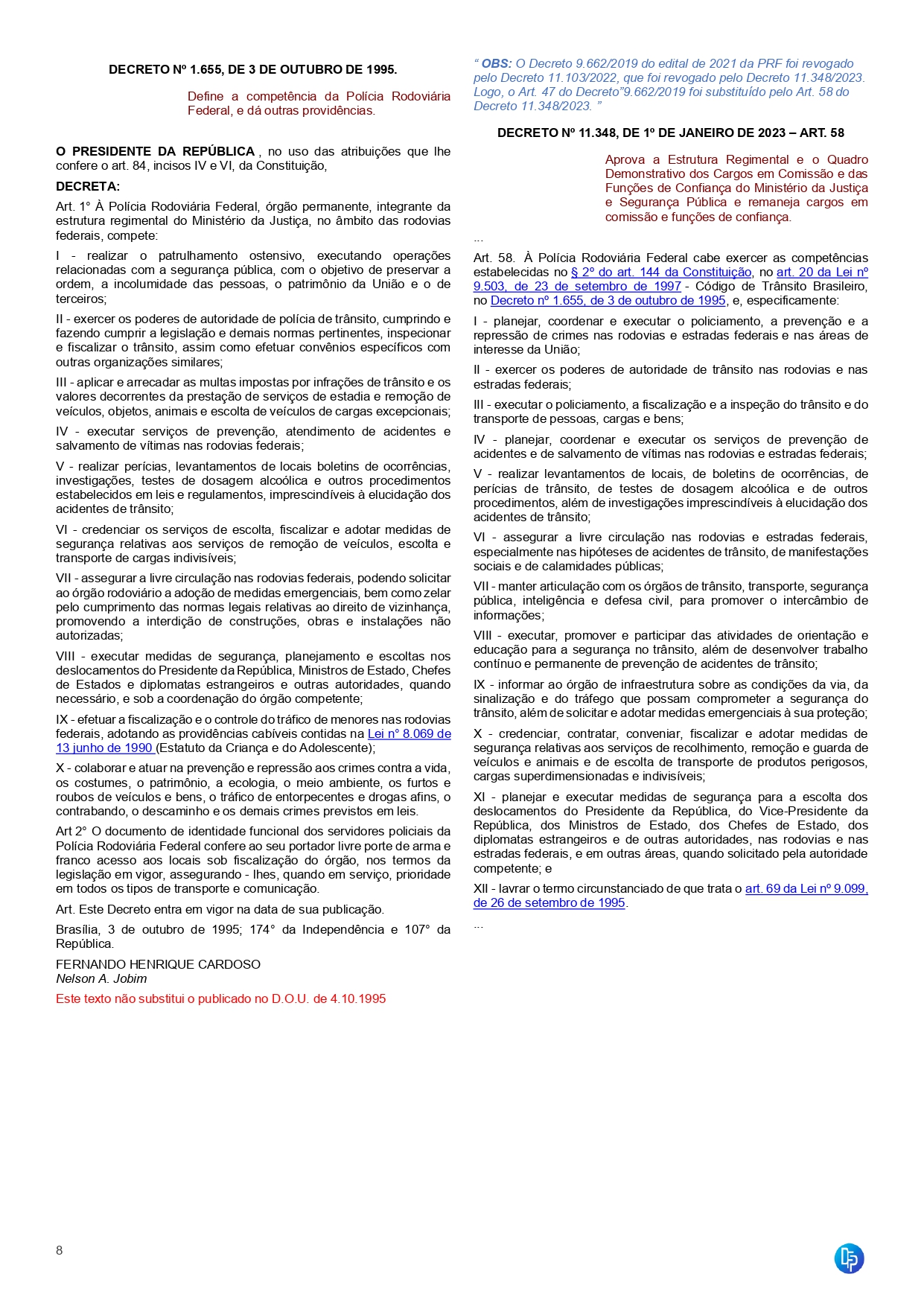- Decreto nº 1.655, de 03 de outubro de 1995