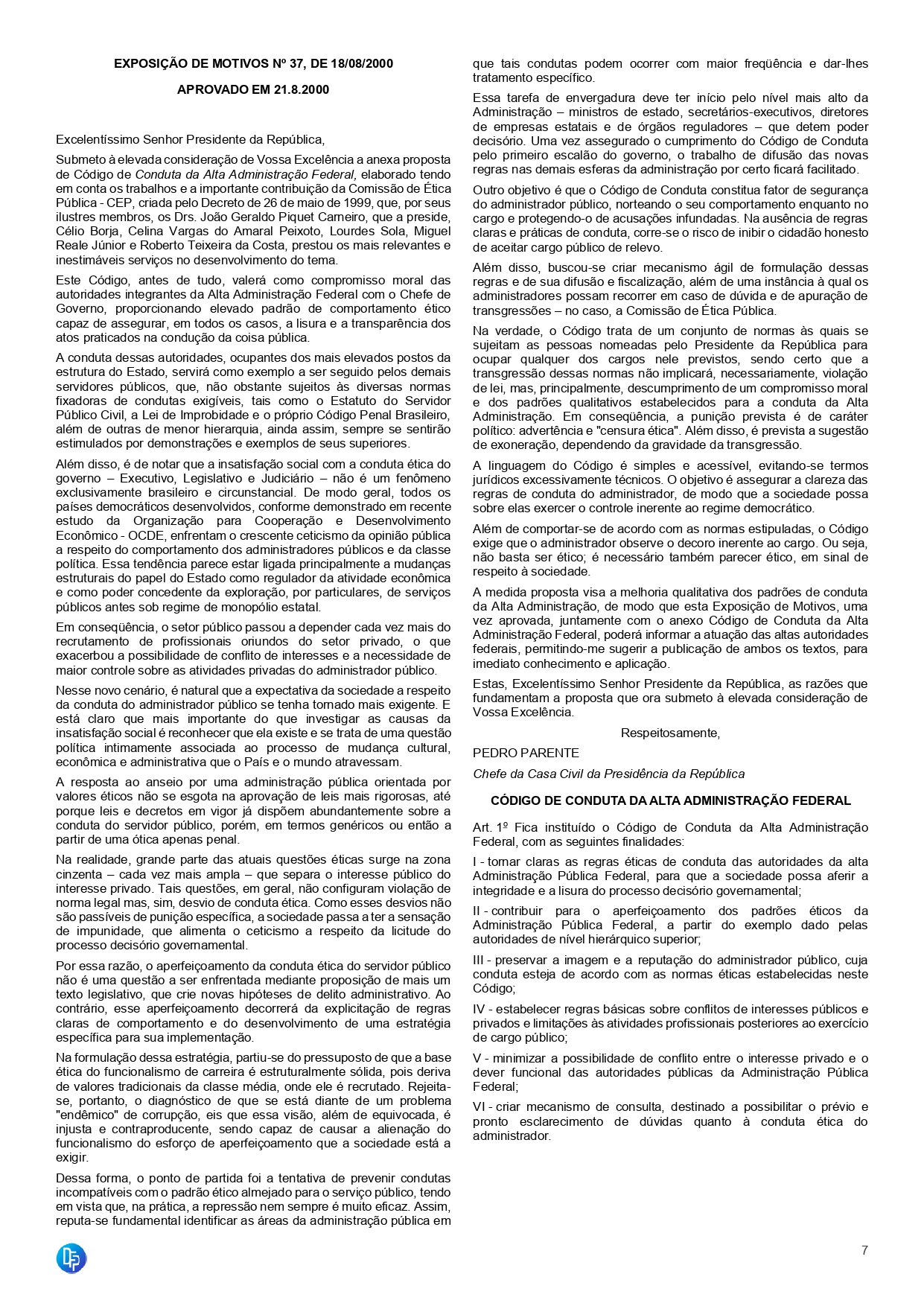 - Exposição de motivos nº 37, de 18/08/2000